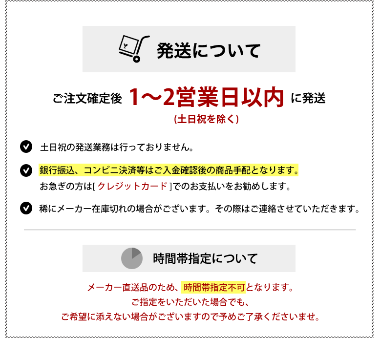 (メーカー直送) 配送について ご注文確認後、翌日〜2営業日以内に発送します。