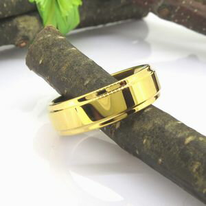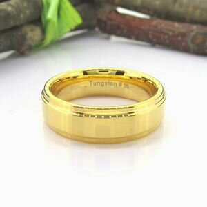 ■素材:タングステン PVDコーティング:K18ゴールド 幅:約6.0mm 厚み:約2.0mm 重量:7.5〜10.5gタングステン プレーン段付平打 6mm幅リング ゴールド ボリュームのあるプレーンタイプの6mm幅リング ペアリングとしてもおすすめ!