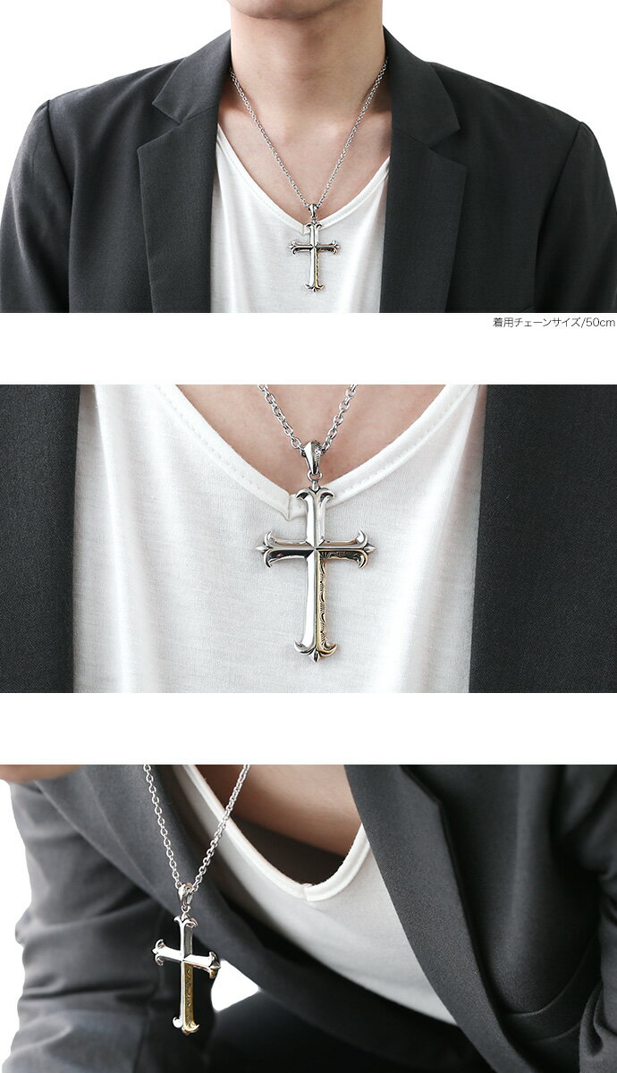 \SALE品!さらにクーポンで割引/Binich(ビニッチ) ツインカラー フレア クロス ペンダント (トップのみ) ネックレス メンズ ブラス 十字架 シルバー925 アクセサリー[シルバーペンダント]